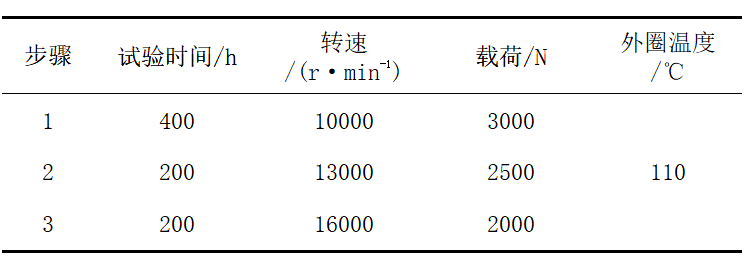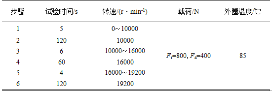 高變速性能試驗結(jié)果見表3,連續(xù)運行時間3150s(52.5min),10個循環(huán),軸承及保持架完好。