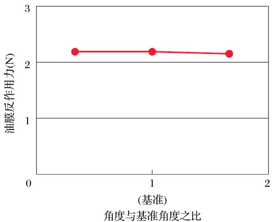 摩擦力矩測量結(jié)果和滑動(dòng)表面的油膜壓力分布顯示,出現(xiàn)在V形潤滑槽端部的力與由于油膜壓力(油膜反作用力)導(dǎo)致摩擦力矩降低的力方向相反。油膜反作用力越大,摩擦力矩越低。因此,可認(rèn)為V形潤滑槽數(shù)量越多,寬度越寬,油膜反作用力越大。流體分析證實(shí)了這點(diǎn)。