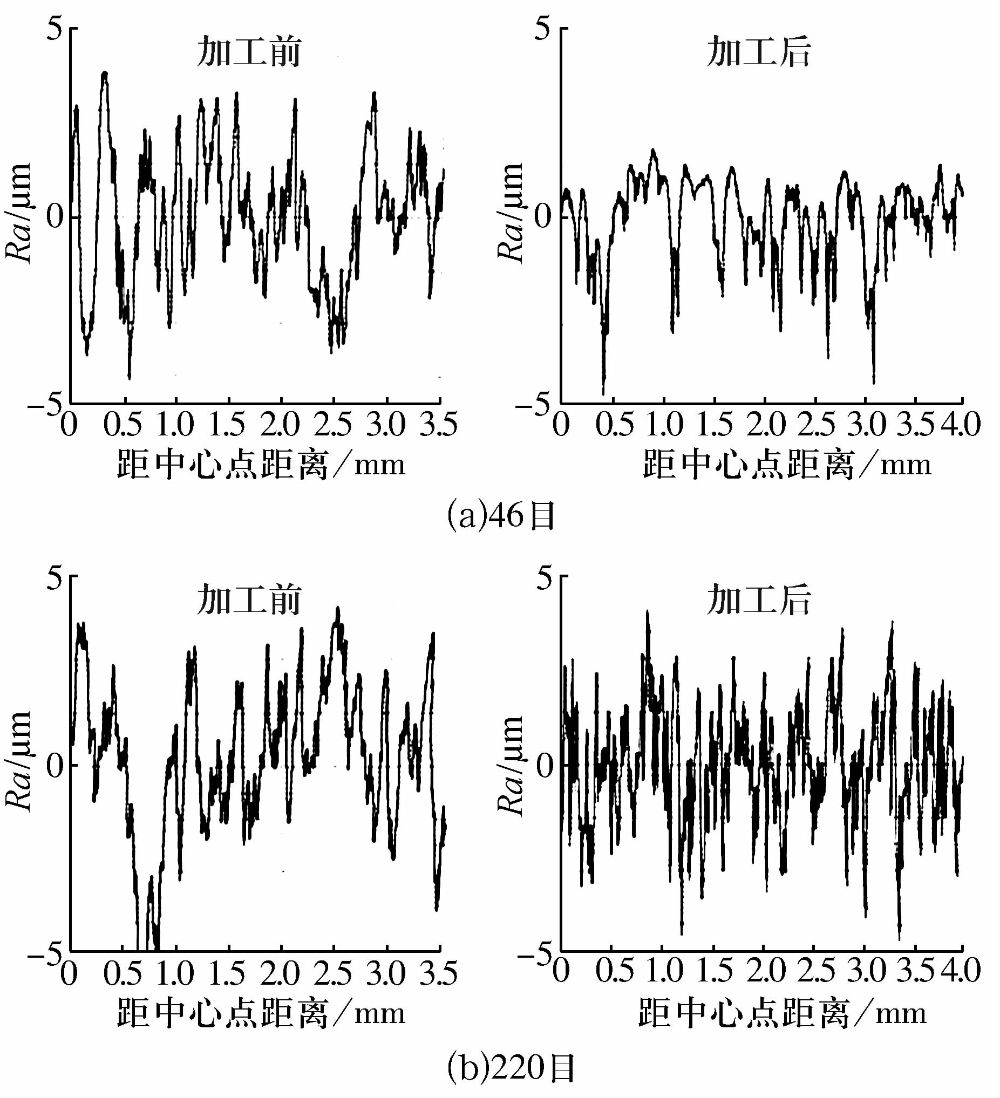 圖5 磨料流加工前后滾子內孔表面粗糙度