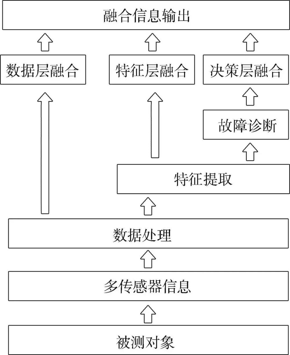 按照數(shù)據(jù)抽象的層次,融合可以劃分為3個(gè)級(jí)別,數(shù)據(jù)層融合、特征層融合及決策層融合,見(jiàn)圖7。