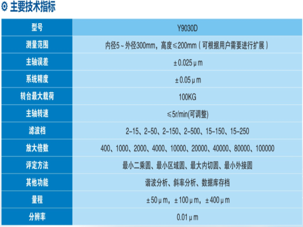 Y90D系列圓度測(cè)量儀是以大承重高精度氣浮主軸為基準(zhǔn),采用計(jì)算機(jī)測(cè)量系統(tǒng)的轉(zhuǎn)臺(tái)式通用型圓度儀,適用于大型回轉(zhuǎn)體工件的的圓度、波紋度、同軸度等參數(shù)的測(cè)量,主要應(yīng)用于大型精密機(jī)械制領(lǐng)域。儀器主要由氣浮主軸、精密調(diào)平調(diào)心工作臺(tái)、花崗巖臺(tái)面和立柱、高精度電感測(cè)頭、精密旋轉(zhuǎn)編碼器、驅(qū)動(dòng)控制電箱、高精度測(cè)量電箱、空氣過濾干燥系統(tǒng)以及基于windows XP的專用測(cè)量分析軟件組成。
